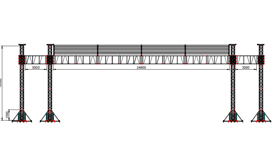 Эта ферма для плоской крышиКонструкция состоит из ферменной конструкции размером 24*12*12,5 м, совмещенной с навесом, и используется для проведения коммерческих представлений как в помещениях, так и на открытом воздухе. После завершения производства мы провели испытания балки длиной 24 м под нагрузкой по стандарту TUV и пробную сборку конструкции в течение двух дней.